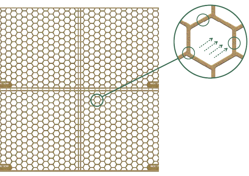 CONTINEWM® Net provide a negative polarization of the air flow passing through, neutralizing the positive charges. As also shown in the scheme below, this elimination of static electricity cancel the repulsive force, allowing the air flow to maximise its contact area with the HVAC heat exchanger's fins.