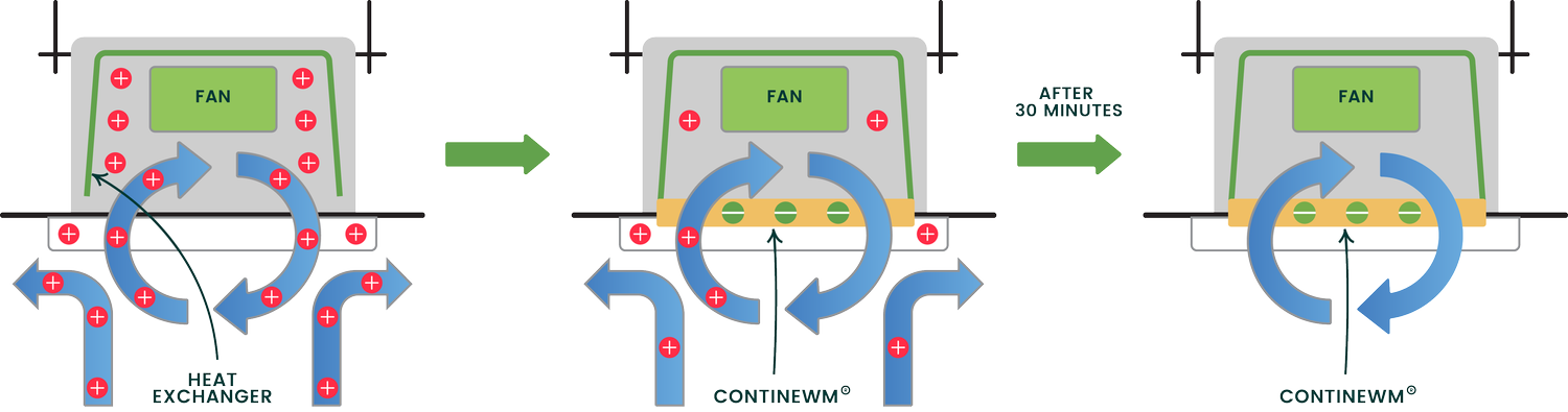 CONTINEWM® technology emits a negative electrostatic charge which neutralises the positive charge of the airflow passing through it.