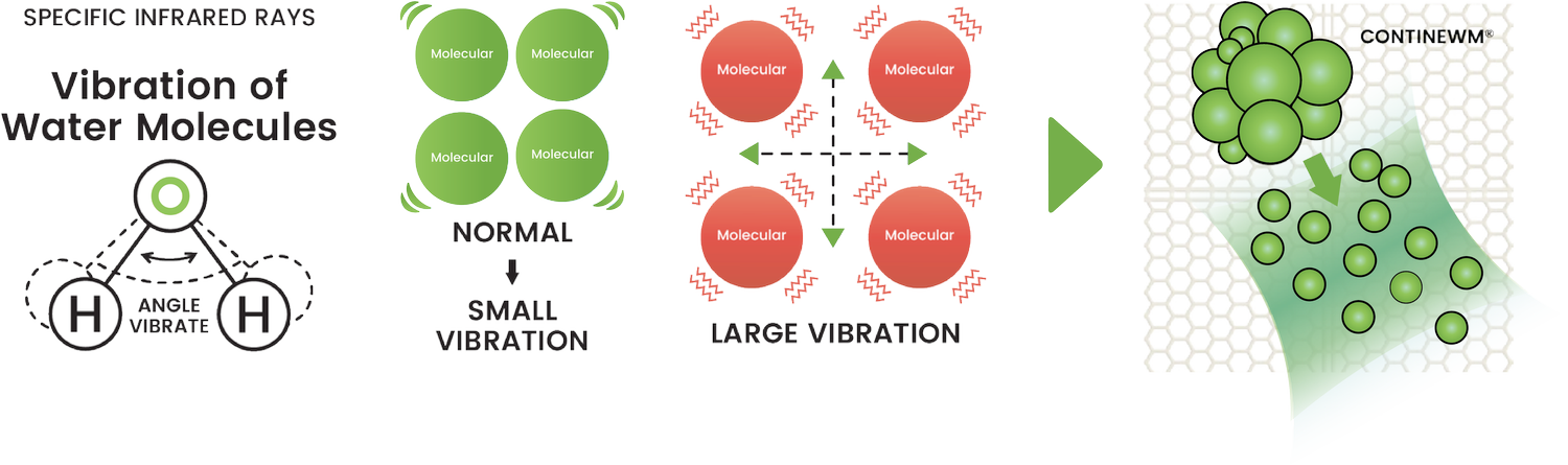 The specific action made by CONTINEWM® patents is able to break down clusters of moisture into individual molecules
