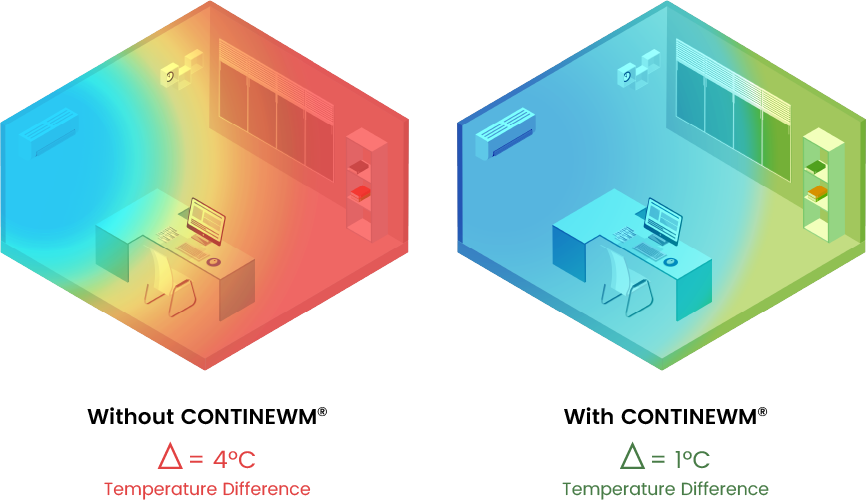 In addition to conserving energy, the specific infrared rays emitted by CONTINEWM® Nets Technology is able to purify the air and remove bad odors.